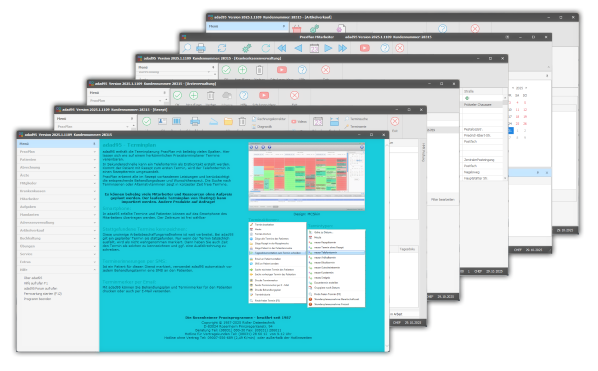 Die Praxisverwaltung adad95 ist die EDV-Lösung für Praxen für sonstige Leistungserbringer z.B. Ergotherapie, Physiotherapie, Logopädie, Podologie. Neben den üblichen Funktionen der Praxisverwaltung enthält adad95 vieles, was beim Mitbewerb Aufpreis kostet. adad95 enthält u.a. – Heilmittelcheck, Heilmittelkatalog, Indikationsschlüssel, ICD‑10‑Diagnosen, Befundschreibung, Patientenhistorie; mehrstufiges Mahnwesen mit Buchhaltungsfunktionen und DATEV‑Export; Terminplanung mit beliebig vielen Mitarbeiterspalten; Privatrechnung; §302‑Kassenabrechnung; Kostenträger‑ und Rehasportabrechnung; Mitarbeiterprovision; Artikelverkauf; Mitgliederverwaltung; und vieles mehr.
